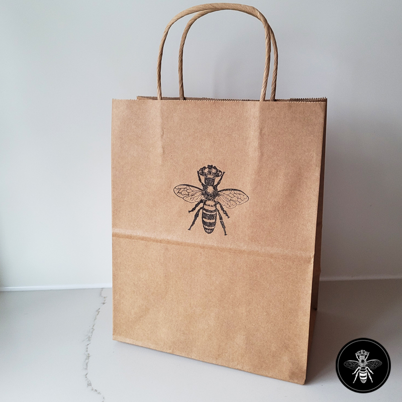 Kraft paper shopping bag made from sustainable recycled materials. Each bag fits up to 5 of the 8-pack assorted boxes.