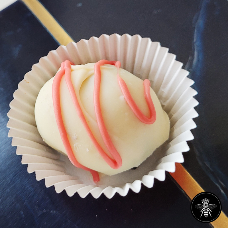 White chocolate exterior with a smooth chocolate raspberry ganache interior