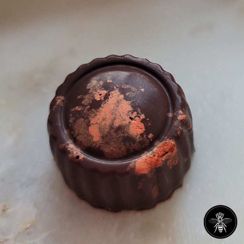 Dark chocolate exterior with smooth sweet and spicy chocolate ganache in the center