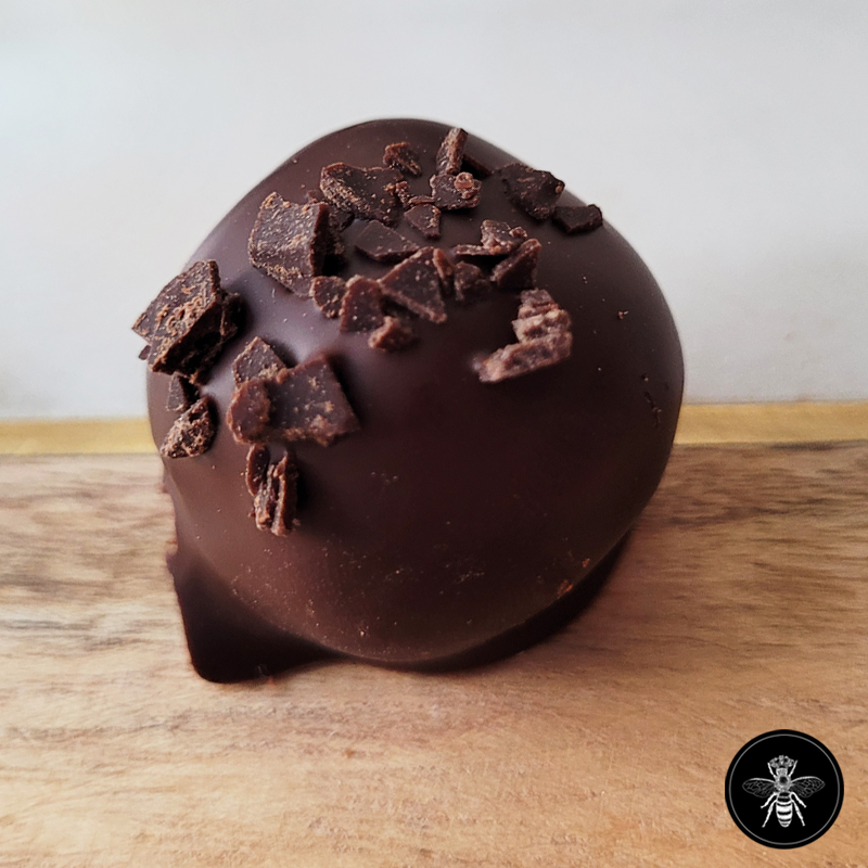 Dark chocolate exterior with smooth sweet and spicy chocolate ganache in the center
